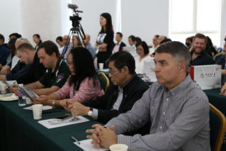 大三王垚同学在为嘉宾翻译在场观众的问题