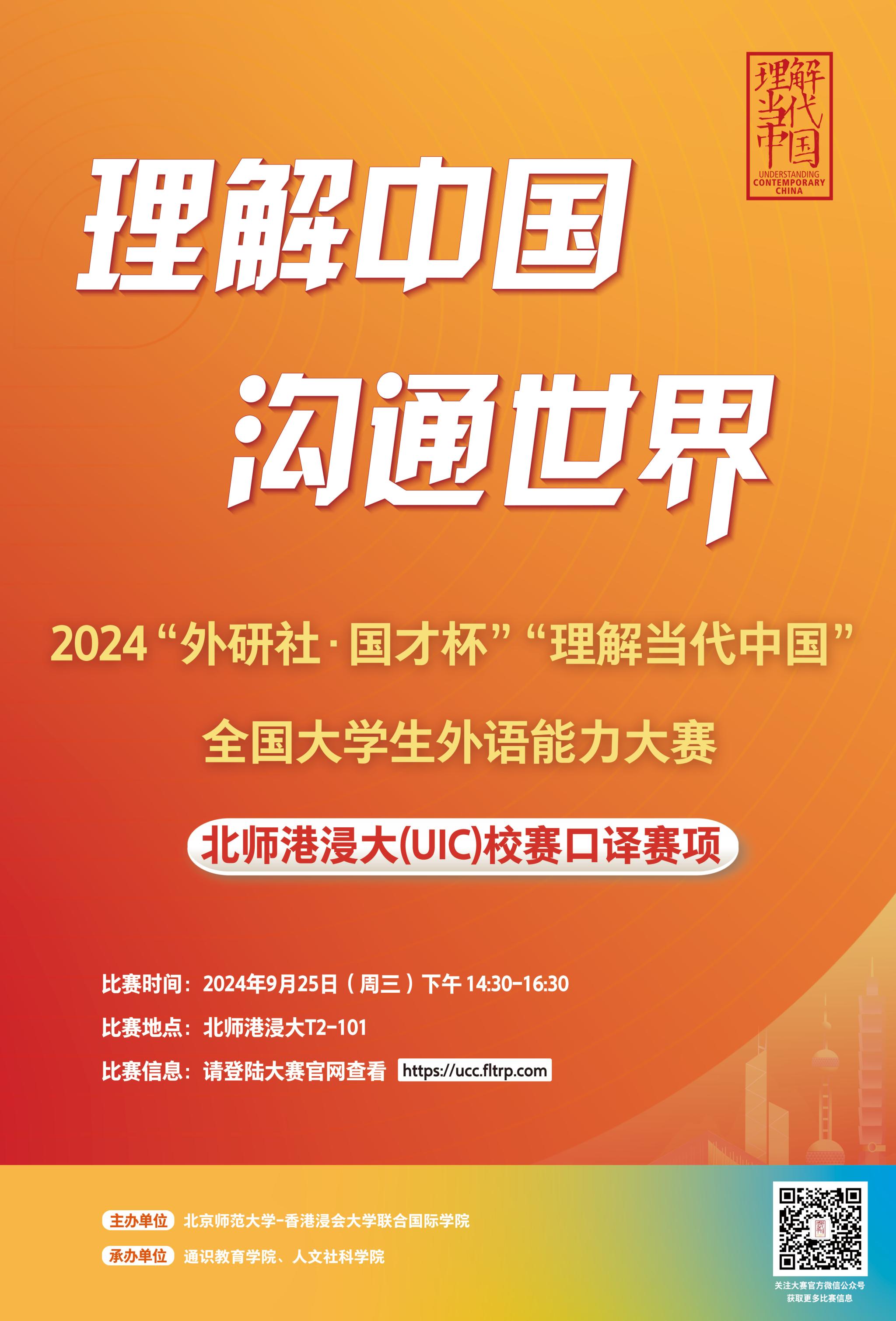 2024年“外研社·国才杯”“理解当代中国”全国大学生外语能力大赛将于4月至12月举办。大赛得到教育部高等教育司、高等学校外国语言文学类专业教学指导委员会和大学外语教学指导委员会指导,由北京外国语大学主办,外语教学与研究出版社承办,是国内颇具权威性和影响力的赛事,连续多年被纳入中国高等教育学会发布的《全国普通高校大学生竞赛分析报告》竞赛目录,是受教育部认可的全国大学生学科竞赛。