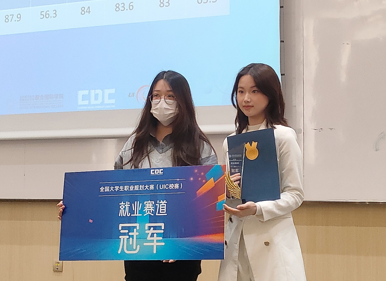 近日,来自BNBU人文社科学院语言文化系应用翻译学专业的大三学生周雨晴获得全国大学生职业规划大赛(BNBU校赛)的冠军,斩获了三个工作offer,分别来自新东方、华发和毕马威。