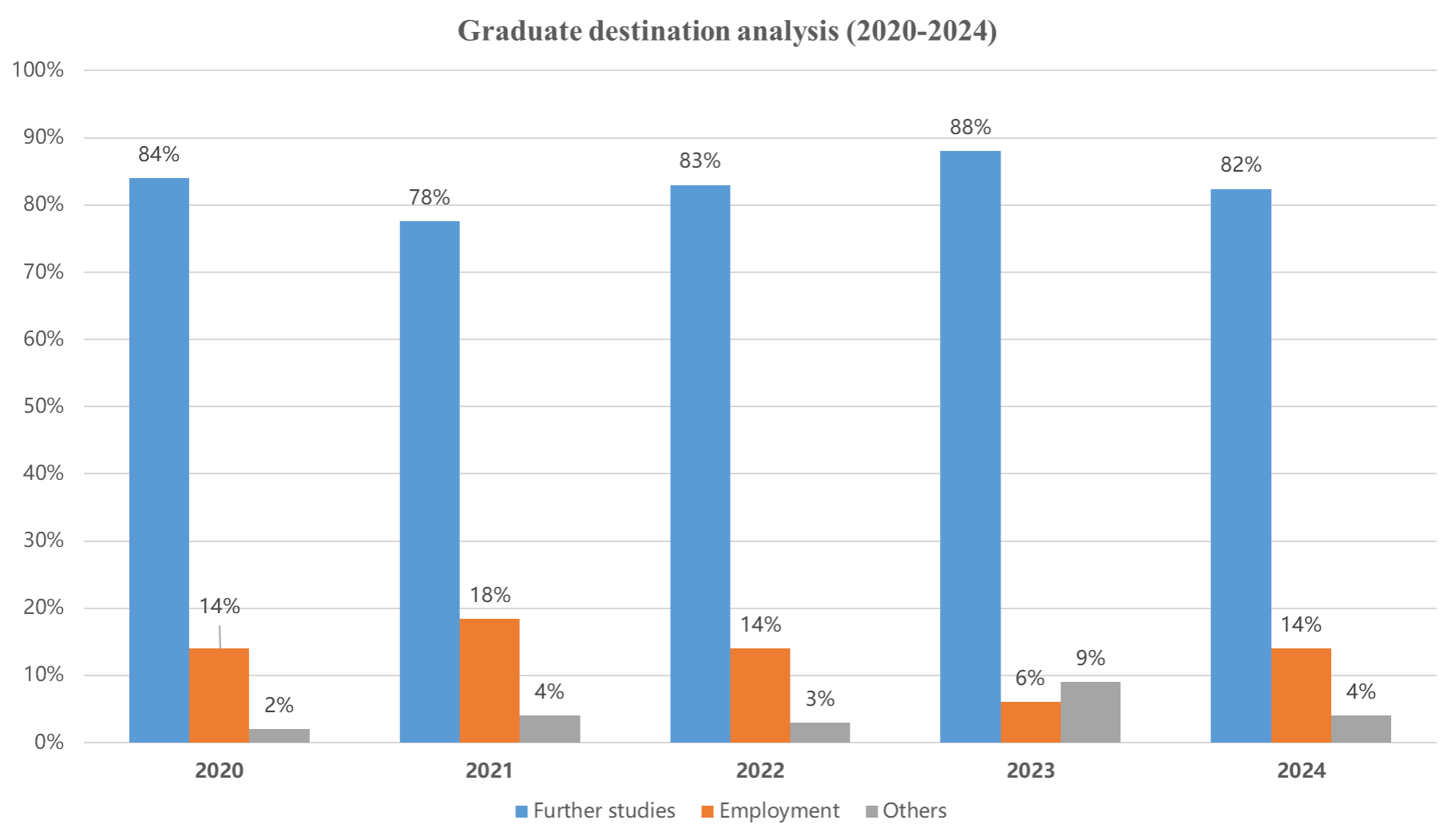 Altogether 51 ATS students proudly graduated in 2024. Approximately 82% of them chose to study for a Master's degree, among which 76.2% were admitted by QS top 100 universities and institutions. Almost all ATS graduates (95%) received more than three offers from respected universities.
