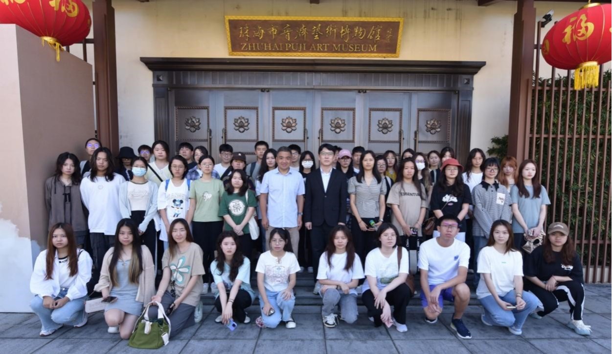 2023年11月5日下午,北京师范大学-香港浸会大学联合国际学院人文社科学院传播学系中华文化与国际传播专业(CCGC)教师陈家宁博士(Dr. Jianing Chen)和赖景丽老师(Ms. Julie Lai)带领选修“宗教与艺术:东方传统(Religion and the Arts: Eastern Traditions)”课程的50多位学生到珠海市普济艺术博物馆参观学习。
