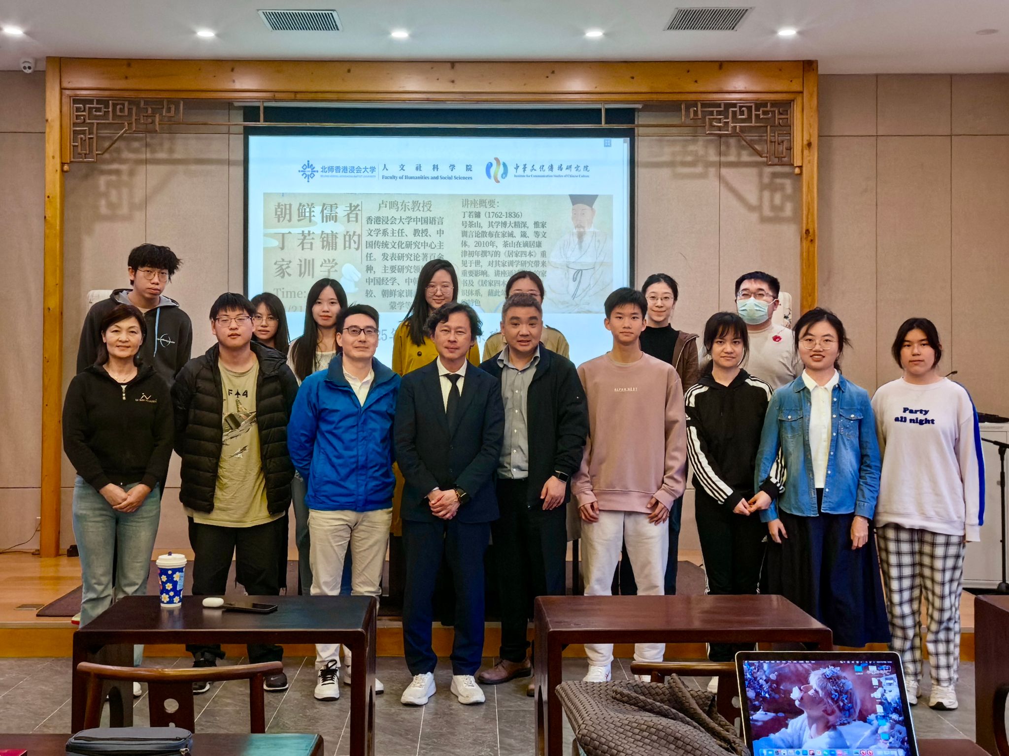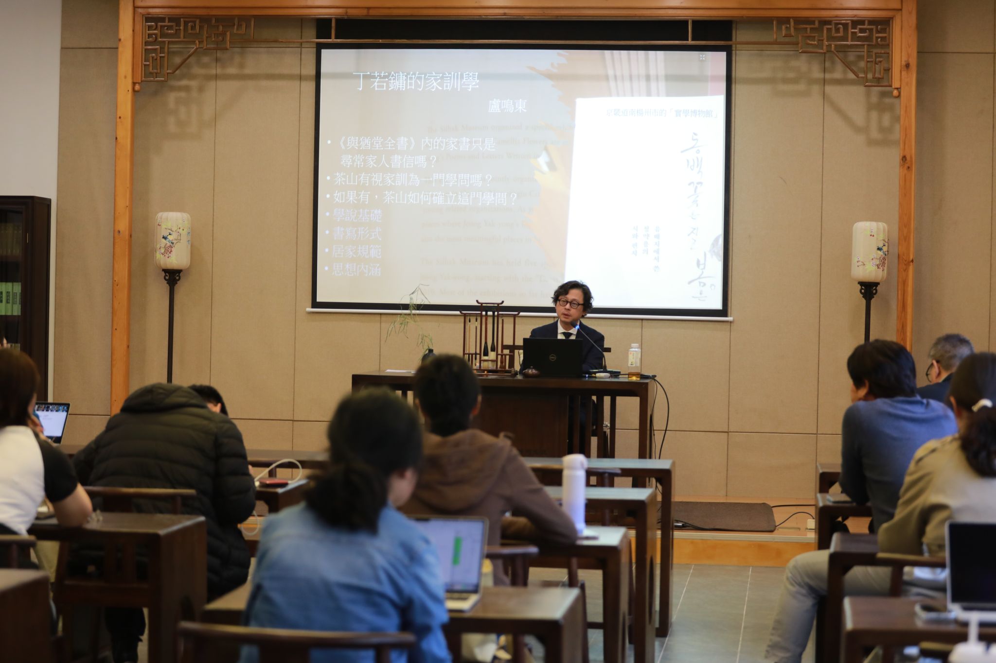 3月21日下午,香港浸会大学的卢鸣东教授受邀来我校讲座,题目为“朝鲜儒者丁若镛的家训学”。作为“中华文化与国际传播硕士课程研讨会”(3月22日)的前序活动,本讲座由人文社科学院、中华文化传播研究院(ICSCC)合办,在古香古色的华信书院举行,由陈家宁博士主持,刁小龙博士、李孟祺博士等众多师生参加。
