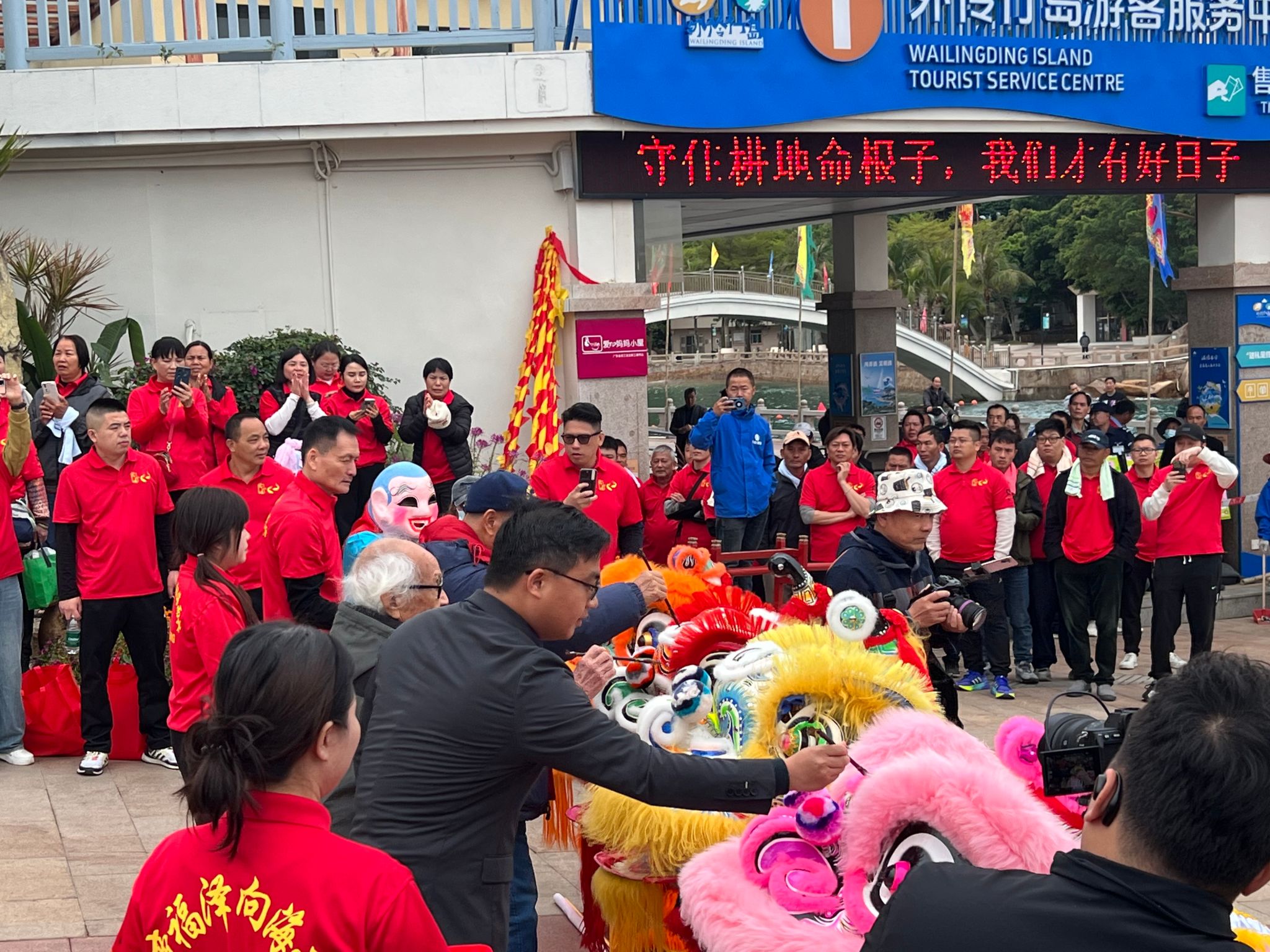 上午1030,北帝诞庆典正式拉开帷幕,仪式以醒狮点睛开场。受邀前来的各界知名人士为四只醒狮点睛,寓意吉祥顺遂。其后,醒狮们以祭海之礼腾跃起舞,迎接四方来客。