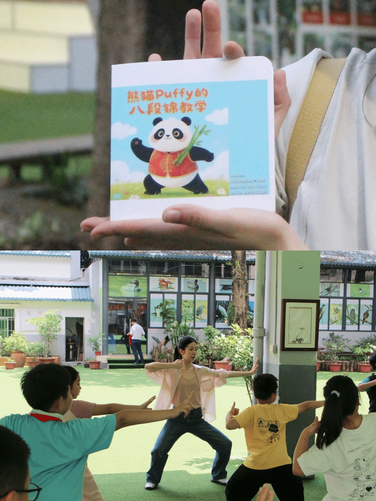 韩炫玥同学则用创意为文化传承插上翅膀。她运用 AI 绘图技术,设计制作出《熊猫 Puffy 的八段锦教程》,在别开生面的身体素质课上,孩子们跟着萌趣的熊猫指引,一招一式练习健身气功,操场上回荡着清脆的笑声;文化课上,她又带来中医五行理论的趣味科普,让孩子们对健康养生有了更生动的认知。在香港浸会大学中医师林振邦博士的指导下,她还自主设计并制作出融合中医养生知识与食谱的手账本,每一页都藏着对孩子们的贴心关怀。这些原创教材像一颗颗饱满的种子,以寓教于乐的方式,在孩子们心中播撒健康与智慧的希望。