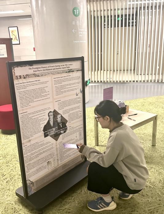 The exhibition focused on introducing the lives and contributions of 26 Western sinologists from the 16th to 19th centuries, hailing from various European countries, including Italy, France, Spain, Portugal, the Netherlands, Germany, England, etc. Some notable sinologists featured in the exhibition included Matteo Ricci from Italy, Robert Morrison and James Legge from England, and Stanislas Julien and Henri Cordier from France. The posters showcased the biographies of these prominent sinologists, their writings about China, and their significant contributions to the field of Chinese studies. This exhibition represented a new endevor by the CCGC 2021 cohort students, who sought to transform their learning outcomes from major courses into academic poster presentations with an emphasis on aesthetic design, thereby showcasing their abilities to the entire faculty and student body.