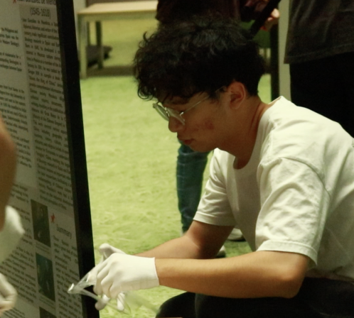 Figure 2, 3, 4 and 5: Sophie Wu, Cyrus Zhang, Meg Duan, Rebecca Liu, Elaine Yang, and Ziang Lin, who are CCGC 2021 students, setting up the poster exhibition at the Learning Resource Center.