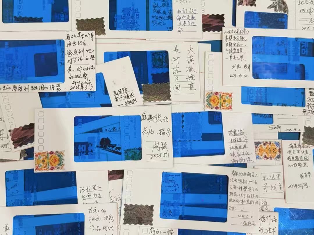 Using particularly designed postcard templates, paired with exclusive exhibition hall filter cards and art stickers, the event allowed visitors to create their own collaged memory of the exhibition. This immersive and interactive experiencing manner opened a window into the folk culture of northern Shaanxi embedded in the paintings. Visitors' self-created postcards were collected and will be featured as new exhibits in the follow-up exhibition. These works carry the public's authentic reflections on art, transcending the constraints of time, allowing audiences to recall the resilience and vitality of culture while calling for greater attention to the richness of traditional Chinese culture.