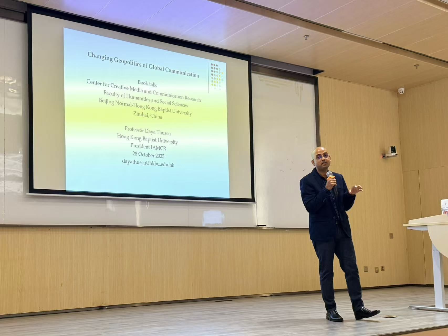Prof. Daya Thussu, a globally renowned scholar from Hong Kong Baptist University and President of the International Association for Media and Communication Research (IAMCR), gave two lectures titled “Changing Geopolitics of Global Communication” and “Contrived and conformist? Rethinking global communication in the AI age” in Beijing Normal Hong Kong Baptist University during Oct. 28 and 29. These lectures are co-sponsored by the Department of Communication (DCom) and the Center for Creative Media & Communication Research (CCMCR). Dr. Anilesh Kumar, Assistant Professor in the Department of Communication, hosted the lectures.