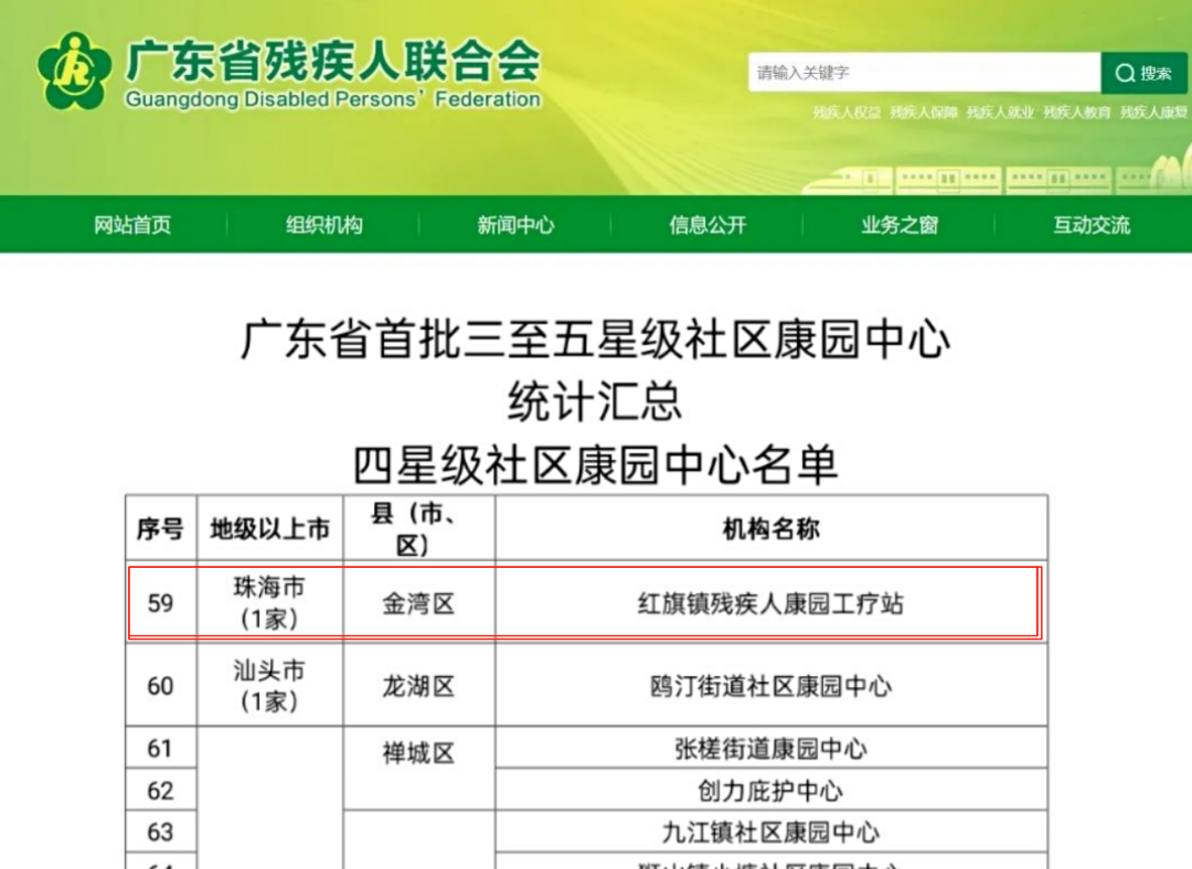 北师港浸大人文与社会科学研究与服务中心(CRSHSS) 运营的“红旗镇残疾人康园中心项目”积极参与了《广东省社区康园中心星级评定》,经珠海市就业服务机构初审、珠海市残疾人联合会复核、广东省残疾人就业服务中心审核及审批。红旗镇残疾人康园中心项目顺利通过《广东省社区康园中心星级评定办法(试行)》评定,获评为“广东省首批四星级社区康园中心”荣誉称号,是珠海市唯一一家四星级康园中心。