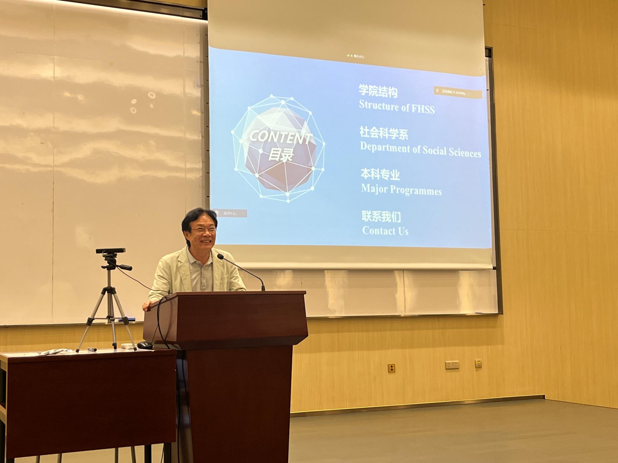 Prof. Wang Xiang introduced the structure of the Department of Social Sciences and explained to students what social sciences are. He emphasised that the Department of Social Sciences is an interdisciplinary department and introduced the characteristics and hot topics related to Digital Social Science (DGS) and Globalisation and Development (GAD).