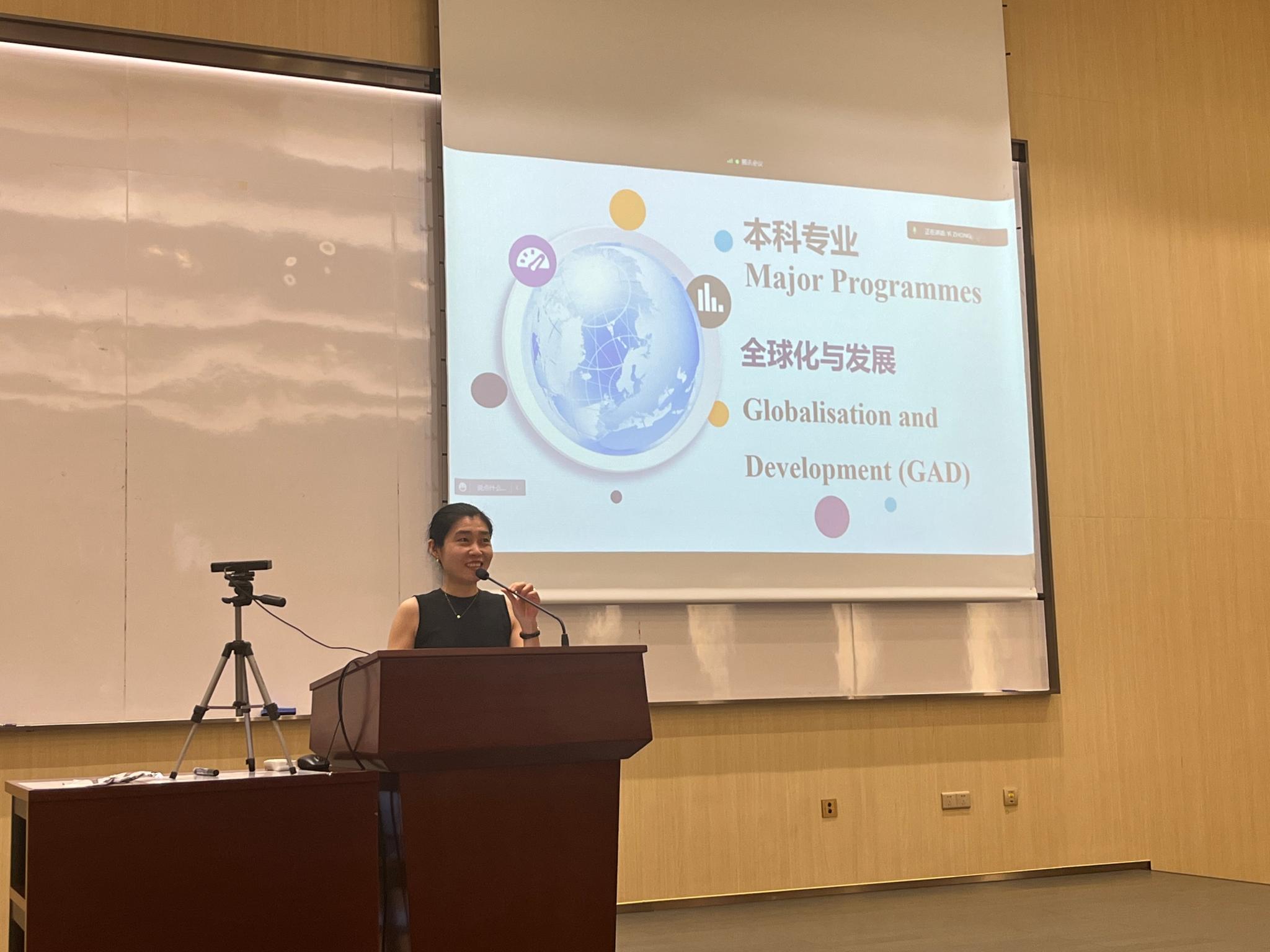 Dr. Wu Shuang, Assistant Professor from the Globalisation and Development (GAD) programme, gave a detailed presentation on the course structure, content and development prospects of the graduates, as well as a number of exciting student learning activities and outstanding graduates from the programmes. She stressed that the Globalisation and Development programme provides an excellent platform for students’ studies and overall development.