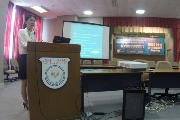 在6月23-24日,UIC英语作为第二语言专业(英教 TESL)本届毕业生9名同学在2016年香港第二届国际语言学学术研讨会(ICLLS)上发表了他们的毕业论文,其中谭俊铭同学赢得了研讨会上最佳论文的奖项。