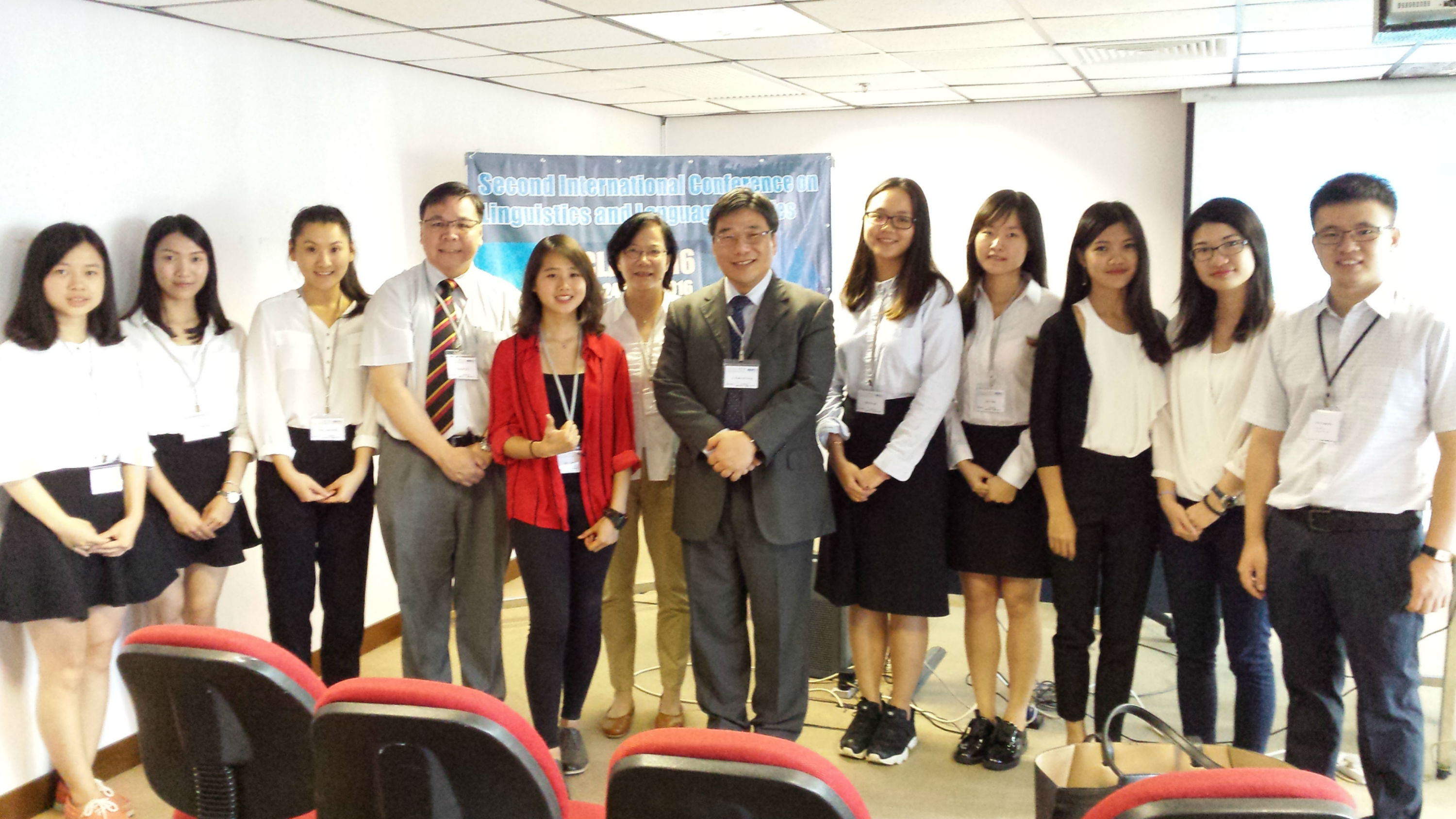 参会同学分别是:陈雅莹、江在力、林瑗、莫普欣、任景然、谭俊铭、吴嘉颖、曾洁珊和周淑敏。谭俊铭同学的论文是“Relationships between Achievement Emotions, Motivation and Language Learning Strategies of High, Mid and Low English Language Achievers ”,她和其他八位同学的论文都发表在2016年ICLLS研讨会的官网上,网址是http://iclls2016.wix.com/iclls-2016#!eproceedings/cyk1。
