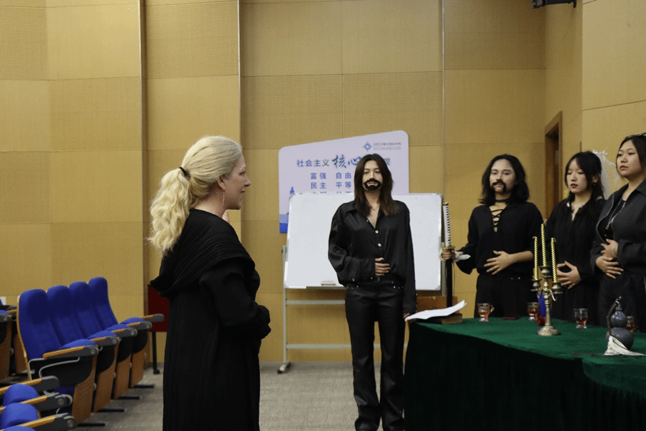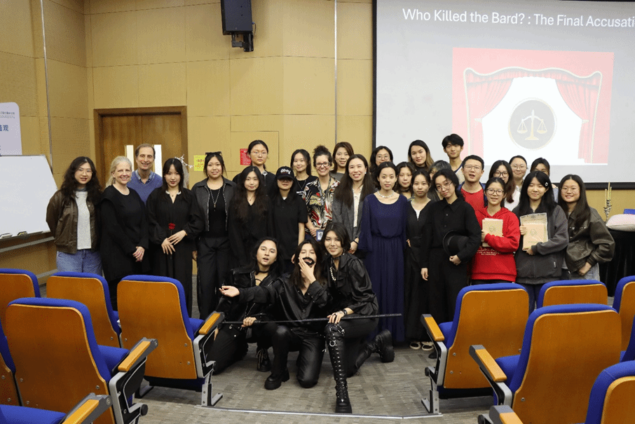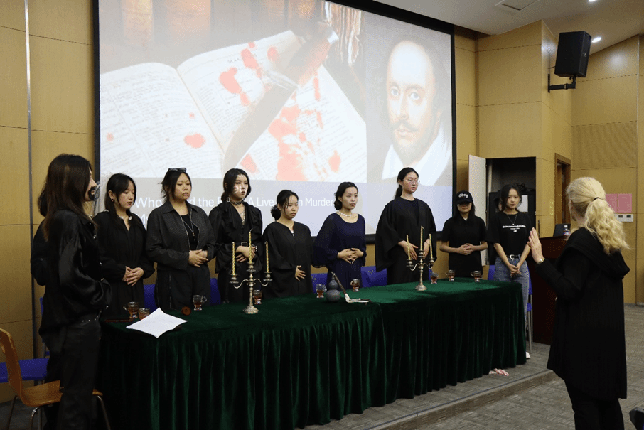 当优胜组准确指认凶手时,现场爆发出热烈欢呼。推理出“真凶”的同学获得的奖品是中文版《莎士比亚悲剧集》,这份礼物巧妙连接了伊丽莎白时代的戏剧经典与本专业致力于的当代多元学术语境。本次活动充分展现了英语文学研习专业学生的创造力。师生通过剧场实践、团队协作与批判性思维的融合,将传统课堂转化为动态舞台,证明了莎士比亚研究绝不仅限于文本解读。