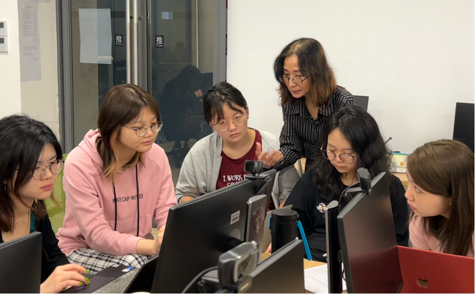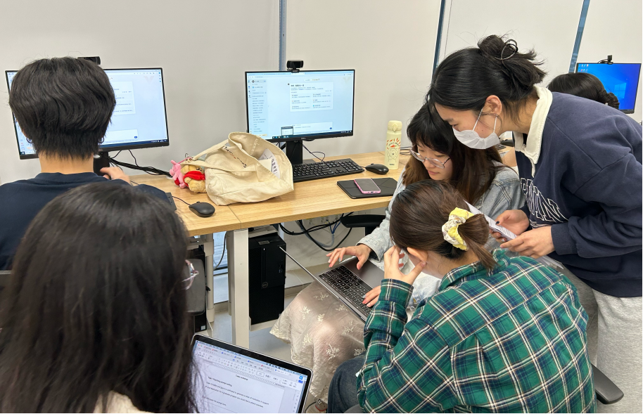 Dr. Jackie was guiding students during a hands-on activity using Ernie Bot