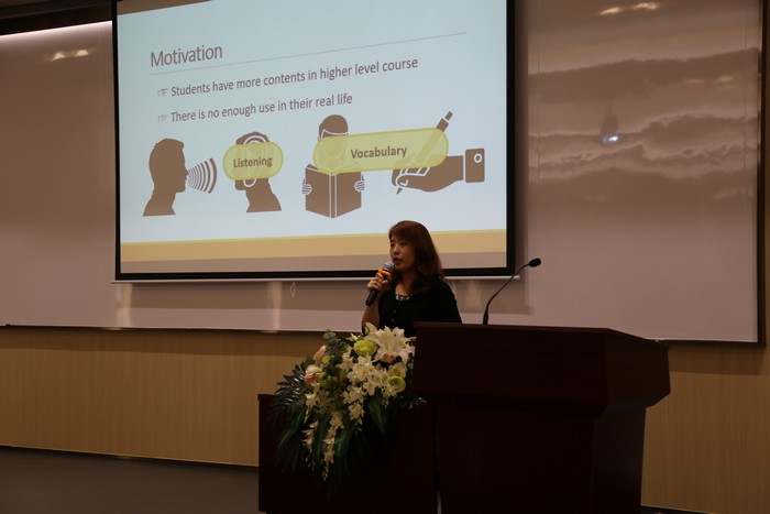 Dr Jackie Lay Kean Yeoh gives her presentation on ‘Extended Lesson on Assessing Listening in ‘Assessment and Evaluation’’