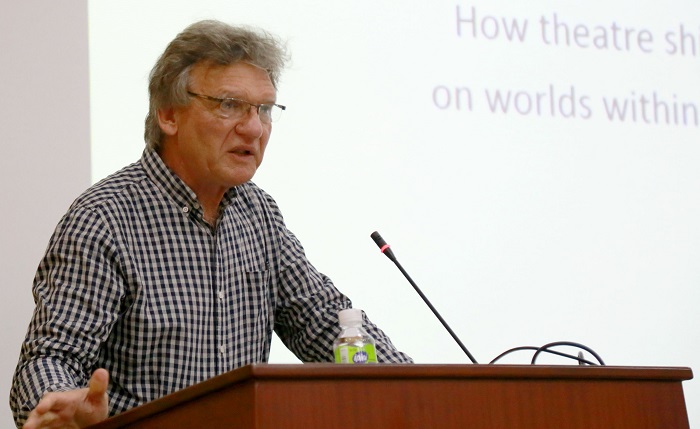 Professor Britton is the first Writer in Residence to be invited to UIC through the Division of Humanities and Social Sciences (DHSS). Associate Professor and Associate Dean of DHSS, Dr Charles Lowe, welcomed everyone before thanking UIC for allowing this opportunity and then he introduced Professor Britton. Professor Britton began the lecture by introducing himself and explaining the meaning of the word ‘playwright’. He detailed why it is ‘playwright’ and not ‘playwrite’, explaining that the word ‘wright’ on its own means ‘maker’.