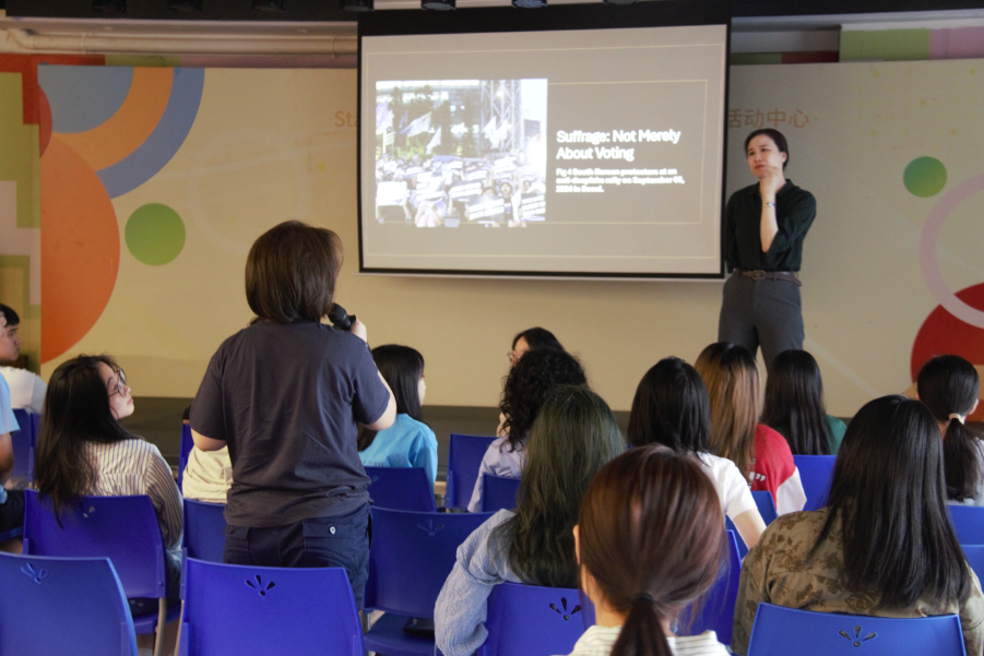 A special movie appreciation event was held by ELLS program on October 9th at T29 Student Activity Center. Students were actively engaged to watch the movie Suffragette, and Dr. Zhang Ruixue was there to discuss and explore the plots, historical backgrounds, and realistic meanings of it.