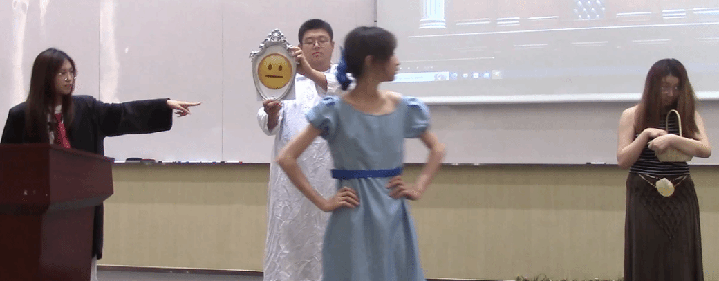 Throughout the semester, students participated in drama workshops led by five dedicated research assistants: Hui QIU, Delan LI, Xiruo MAO, Yuzhi RUAN, and Hanzhi XU, who guided them through the processes of adaptation, stage performance, and multimedia production.