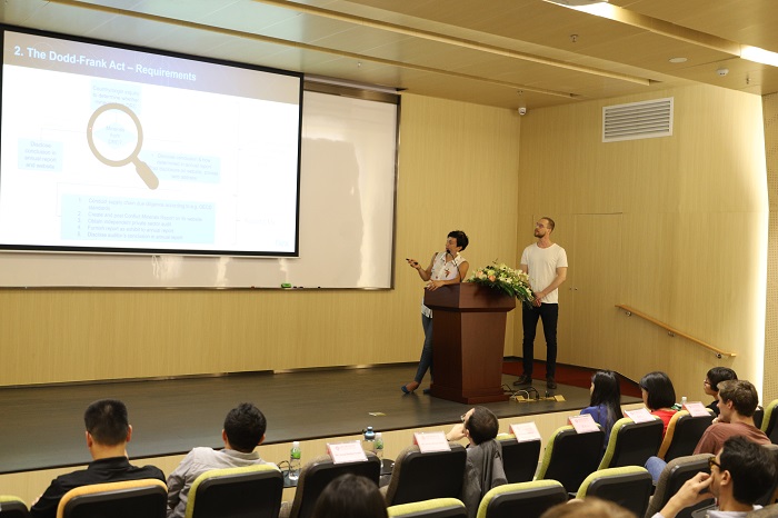 The presentation also covered the regulations that have been put in place to increase ethical sourcing such as the Organisation for Economic Co-operation (OECD) guidelines and the Dodd-Frank Act, adopted in the United States in 2010. These serve to deter the unethical sourcing of conflict minerals through increased transparency and due diligence along companies’ supply chains.