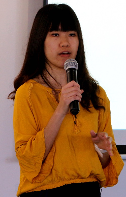 The third person to speak was Year 2 IJ student, Yin Lanjing, who spoke about when she went to Zhuhai television station and they were trying to create a news app. She finished off by explaining that all people can be journalists.