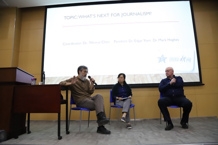 After discussing the field of journalism more generally, the conversation moved to what Dr Chen called “The crisis of journalism”. Dr Yuen argued that it isn’t really a crisis of journalism, because journalism has changed forms many times since the beginning of civilization when “journalism” could be described as verbal story telling. He argued that instead it is a crisis of print media, as the internet and new media are becoming preferred over traditional newspapers.