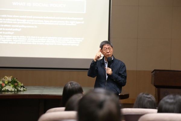Dr David Fu-Keung Ip, associate professor at the Department of Applied Social Sciences of Hong Kong Polytechnic University, gave a lecture at UIC on the meanings of social work, social policy and social development as well as their relationships on 24 March.
