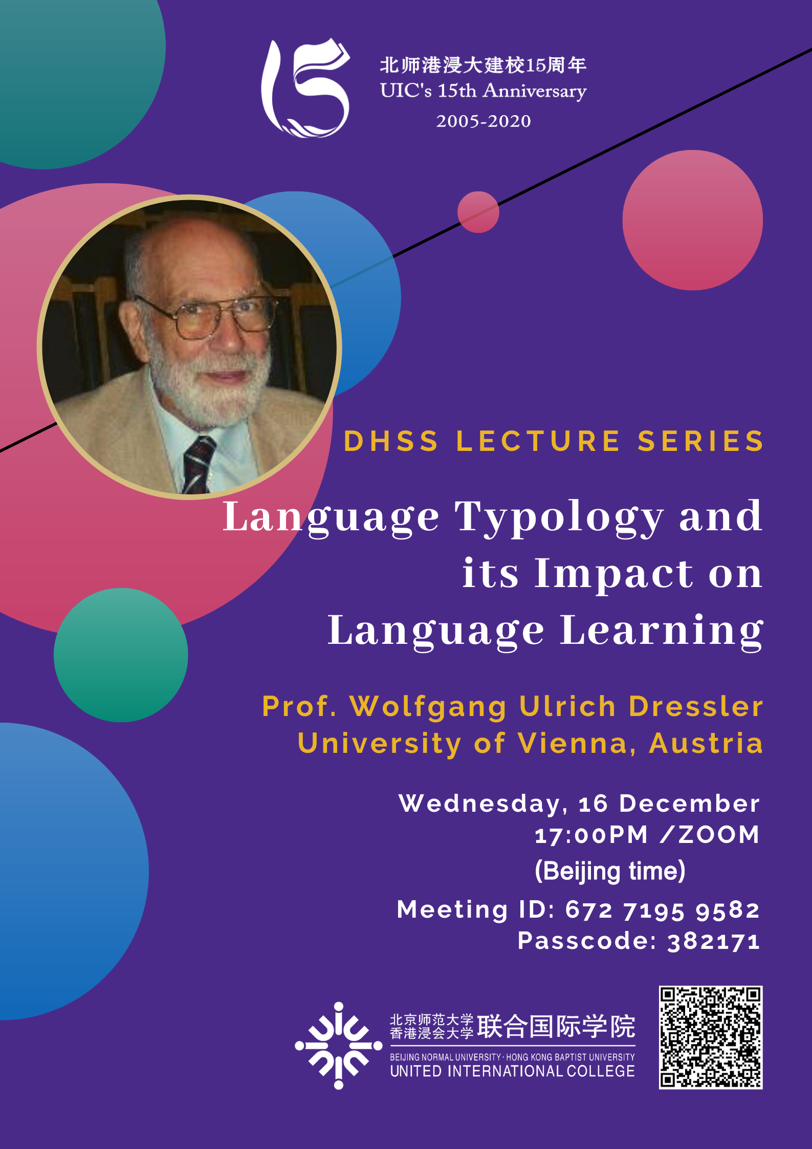 On 16 December 2020, the CFLC offered an academic lecture entitled “Language Typology and its Impact on Language Learning" held by Prof. Wolfgang Ulrich Dressler, Professor. Owing to the epidemic, the lecture was organized online and was attended by numerous UIC teachers and students. Prof. Carlotta Viti introduced the speaker and moderated the event.