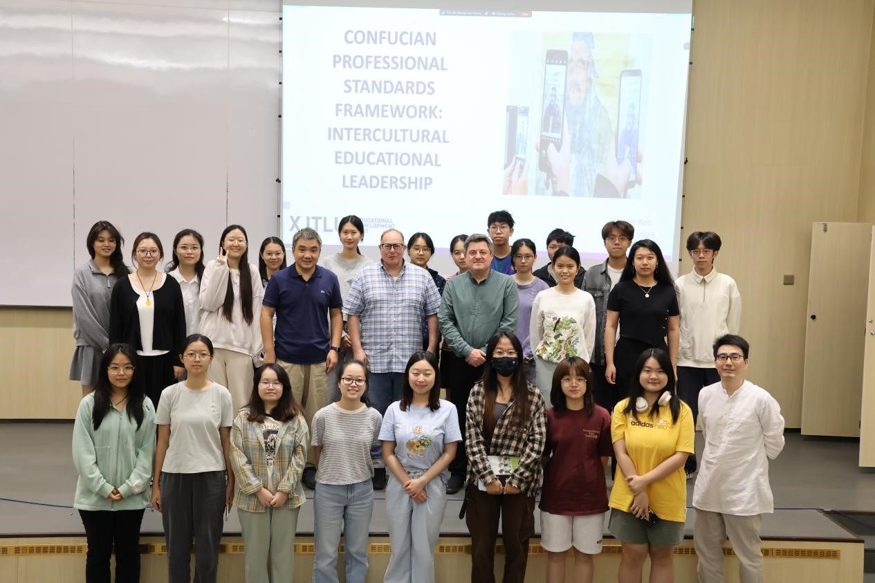 On October 24th, 3:00 PM, Dr. Charlie Reis, the Director of Educational Development Unit of the Xi’an Jiaotong-Liverpool University, invited by DCOM, FHSS, gave a lecture at T7-104, entitled “Confucian Professional Standards Framework: Intercultural Educational Leadership.” The lecture was hosted by Dr. Jianing Chen. Dr. Xiaolong Diao from CCGC, Dr. Milen Gotchev Jissov, Associate Director of CTL, and many students attended.