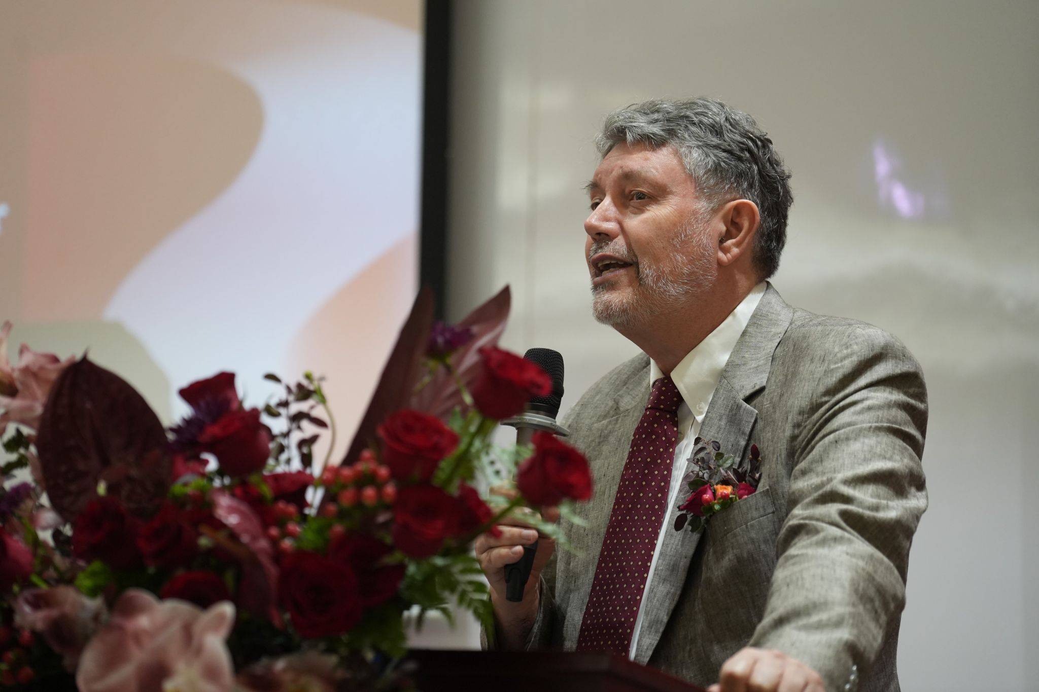 活动伊始,人文社科学院副院长(教学)John Corbett教授致开幕辞,回顾学院发展历程,展望跨学科研究的未来方向。