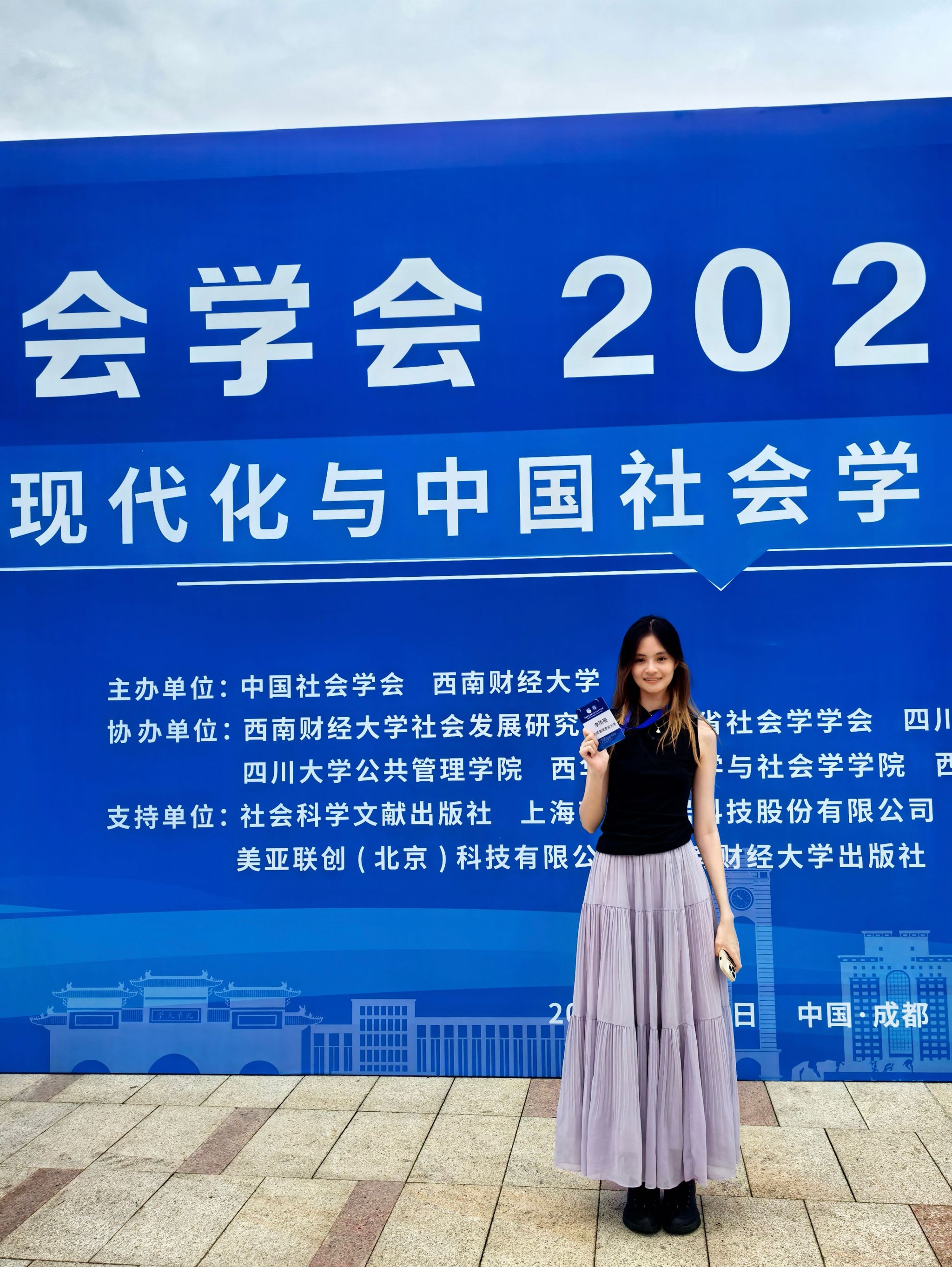 2025年7月5日至6日,国内社会学领域最具学术影响力的会议——中国社会学会年会于成都召开。在由云南大学民族学与社会学学院和北京大学社会学系联合主办的“影像社会学论坛”中,BNBU人文社科学院中华文化与国际传播专业(CCGC)的李雨珊同学作为唯一一位本科生发言人,受邀汇报其虚拟现实研究项目,展示了当代青年学子对社会记忆与技术交汇的前沿探索。