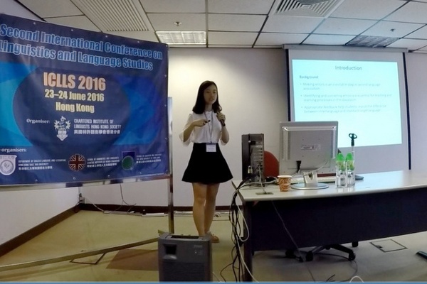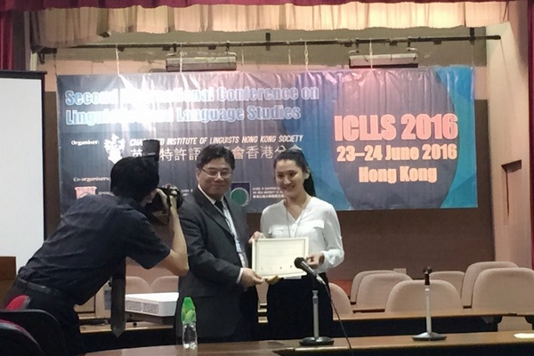 Nine graduating students from the Teaching English as a Second Language Programme (TESL) presented their final-year-project (FYP) research papers at the 2nd International Conference on Linguistics and Language Studies (ICLLS) in Hong Kong on 23 and 24 June. Remarkably, one of the students Jennifer Tan won the Excellent Paper Award 2016.
