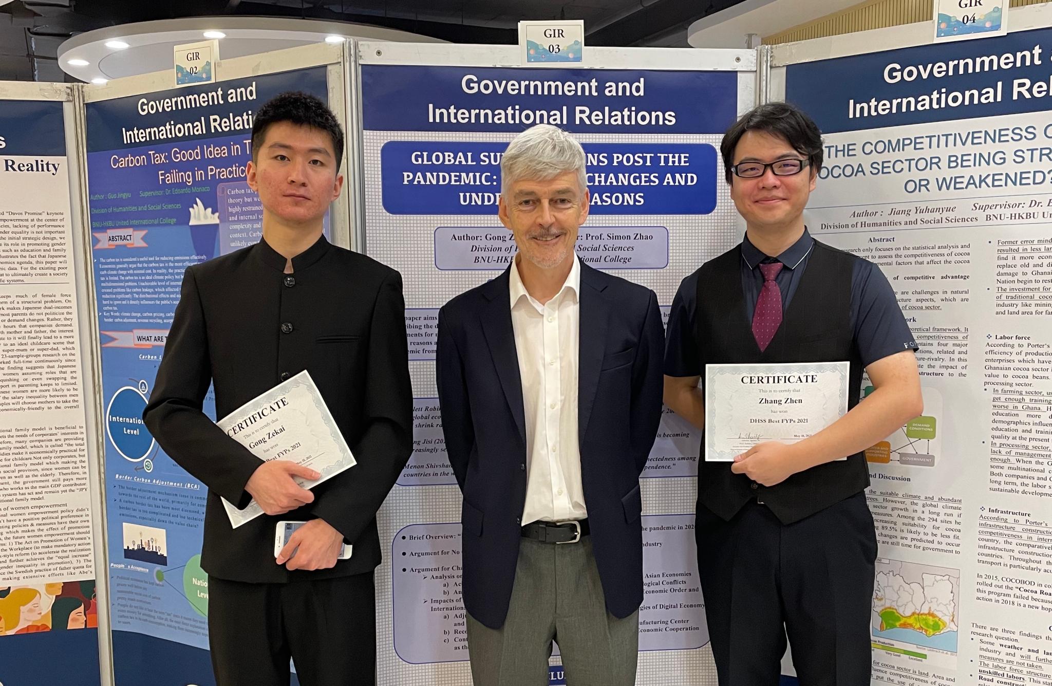 Adrian Bailey教授(UIC协理副校长,DHSS院长,GAD讲席教授)与获奖学生