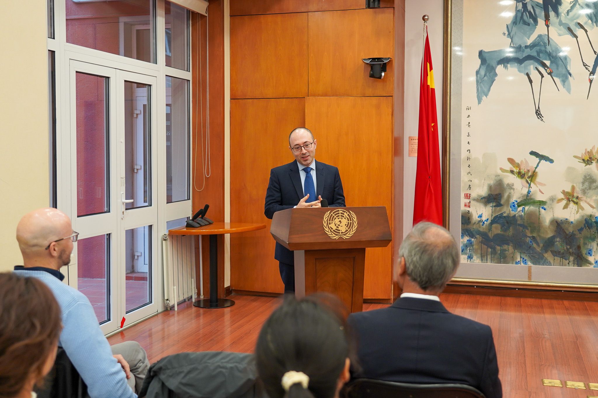 在联合国驻华协调员办公室(UNRCO )举行的特别会议是此行亮点。联合国驻华协调员常启德先生亲自接见代表团,就全球治理体系改革、领袖素养中的身心健康管理等议题展开深入交流。常先生统筹管理联合国在华26个机构,其真知灼见令学子受益匪浅。