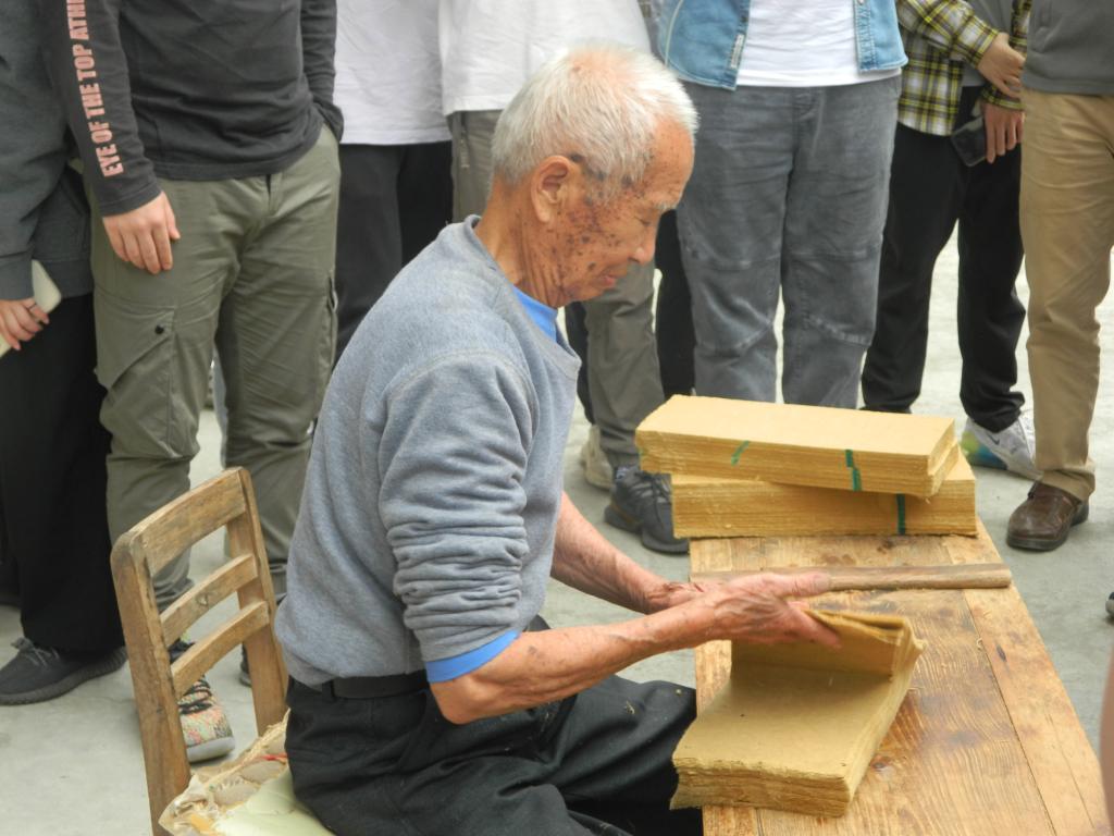 Students observe the process of traditional local papermaking