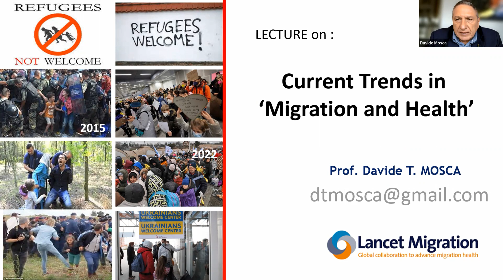 The interlinkage between migration and the cross-border international spread of diseases has been a long-standing public health concern. However, the recognition of migration as a determination of health and a factor impacting in diverse forms on the health of migrants is rather recent. In his lecture, Prof. Mosca provided an overview of the foundations of the evolving global migration and health agenda, current dynamics in a globalized and interdependent world, challenges and approaches at policy and response level, and future perspectives.