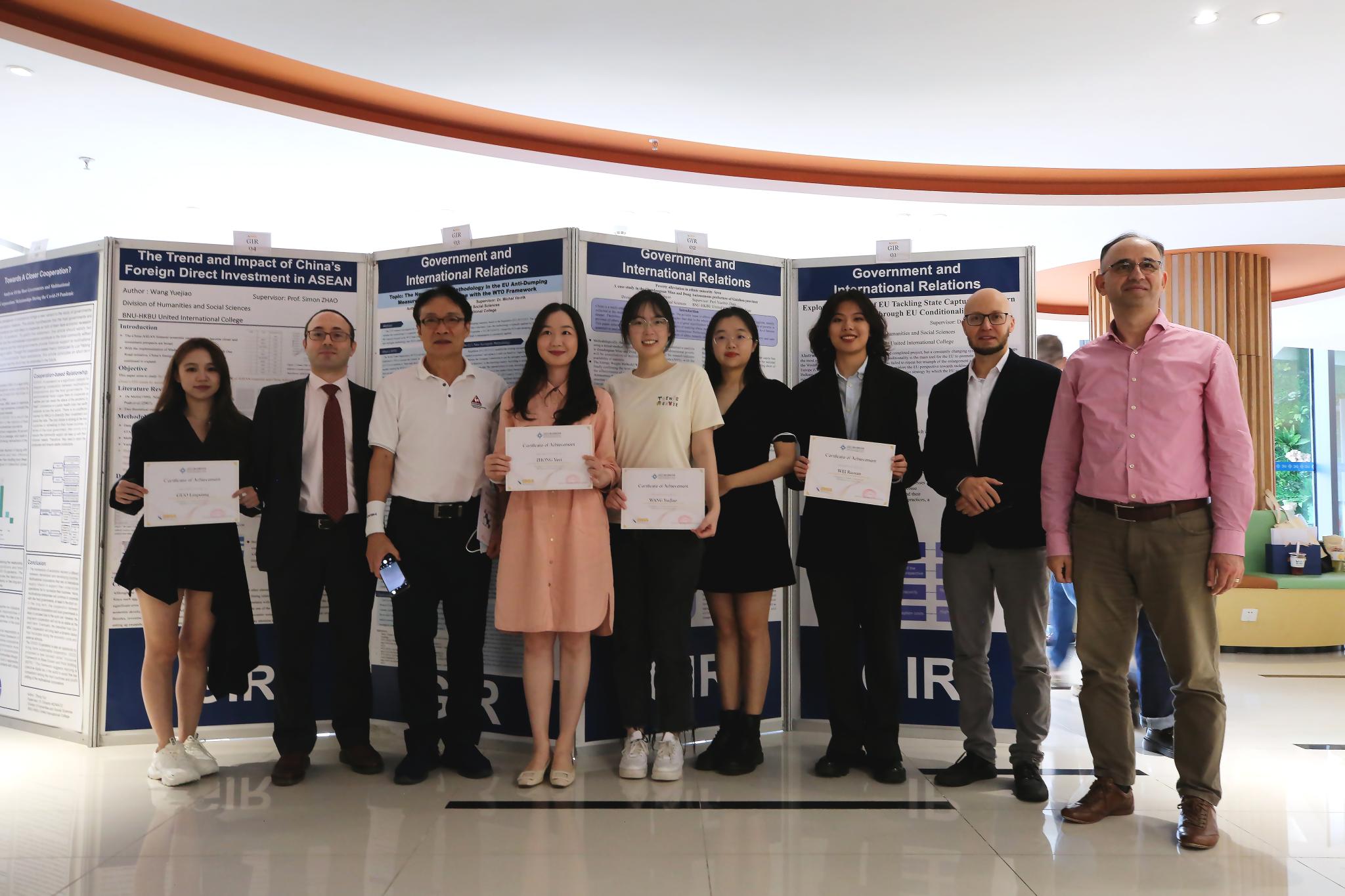 The Division of Humanities and Social Sciences (DHSS) Exhibition of Student Achievements 2022 for Best Final Year Projects (FYPs) and Award-Winning Projects was held on May 18, 2022. Five senior GIR students - Ms. Guo Lingxiang, Ms. Wang Yuejiao, Ms. Wei Ruoyan, Ms. Qin Siyao, and Ms. Zhong Yuyi who excelled in their respective projects - received the FYP Awards and presented posters of their work at the exhibition.