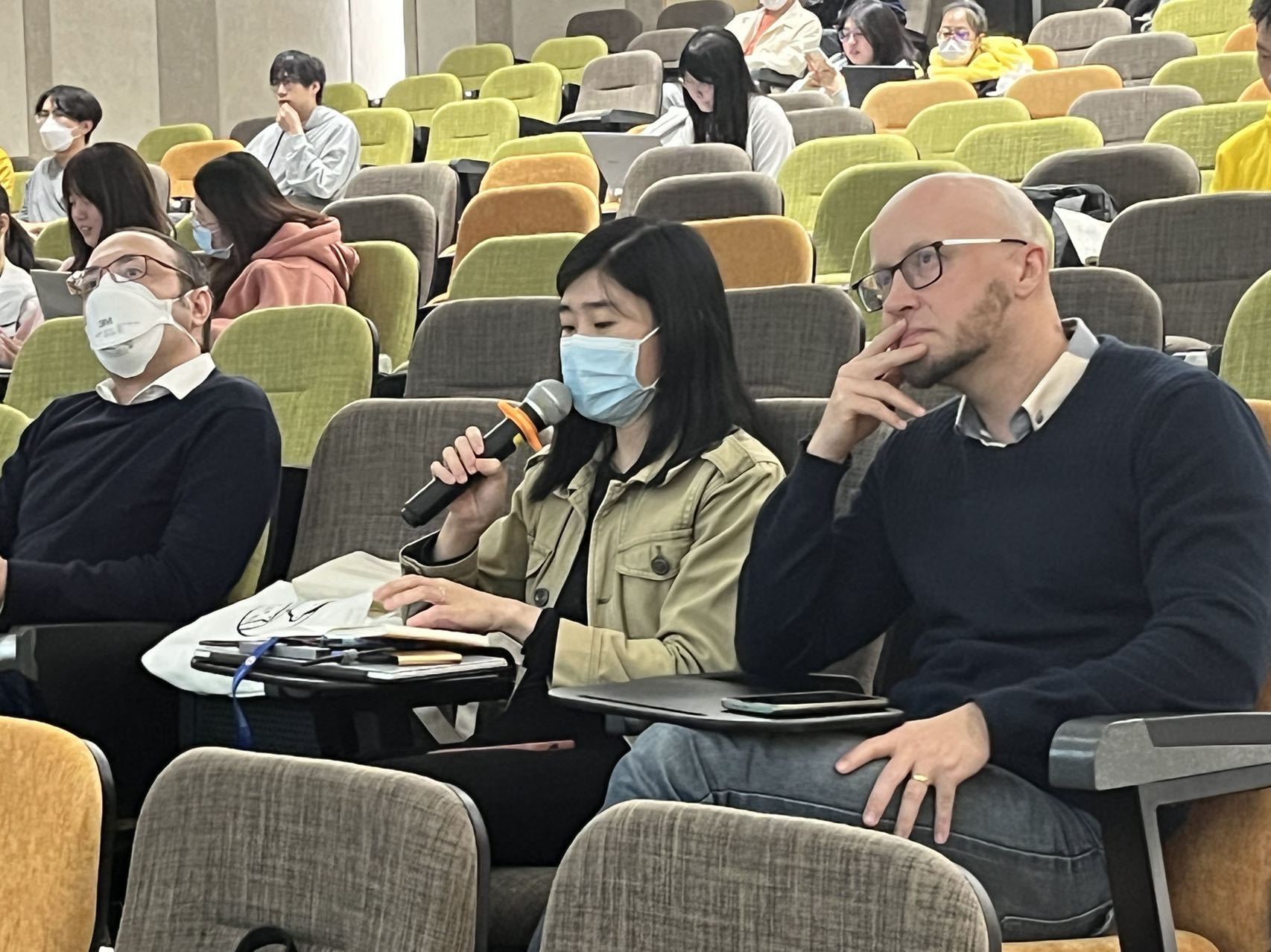 GAD Assistant Professor Dr. Shuang WU asking questions of Mr. Egulu