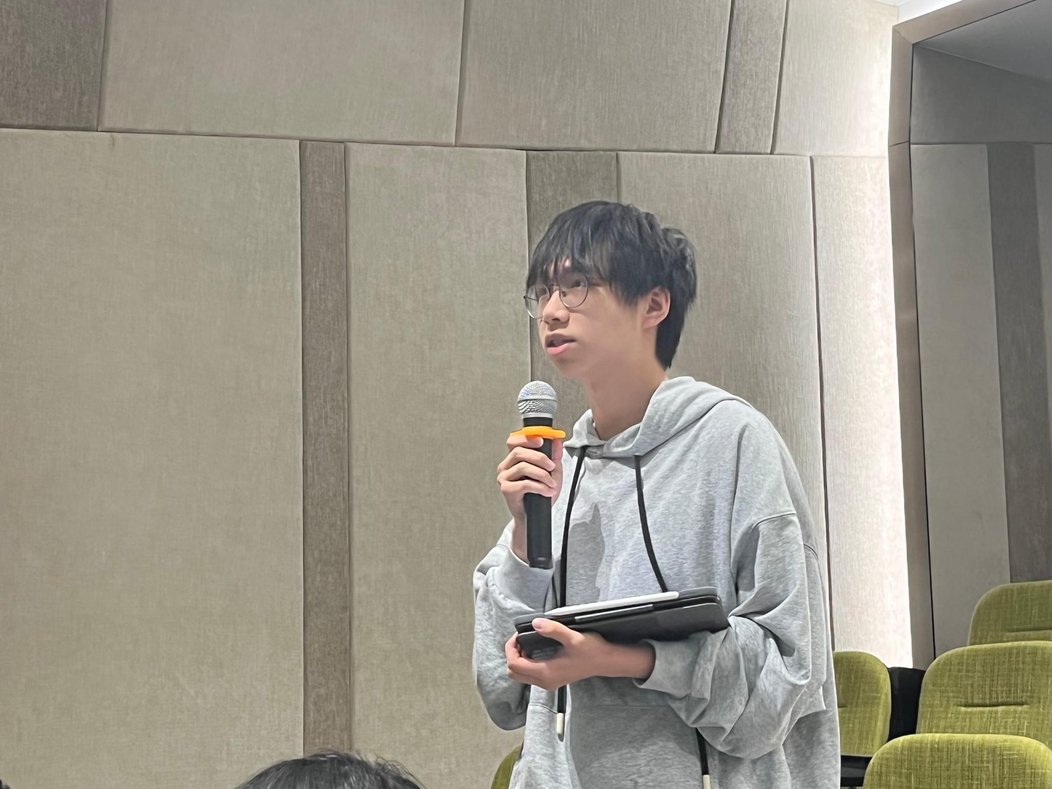 GAD Year 3 student Mr. Lin Kaidong asking questions of Mr. Egulu