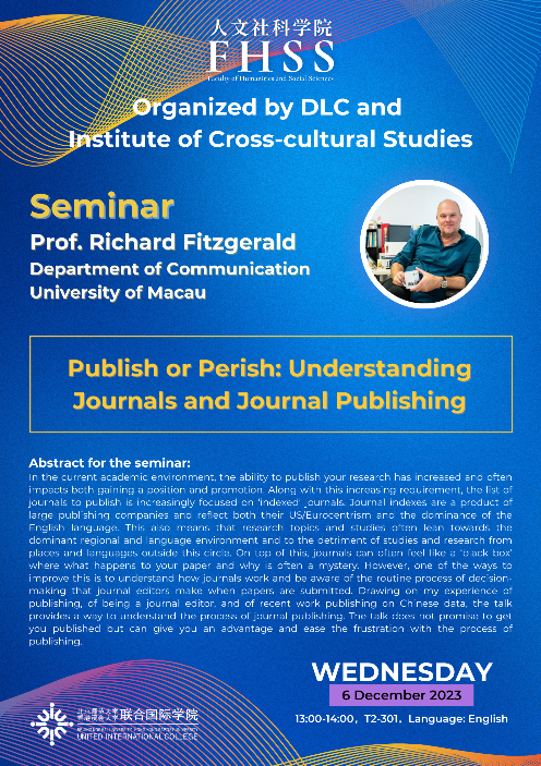 The ICCS and the Department of Languages and Cultures co-hosted two seminars by Professor Richard Fitzgerald of the University of Macau (5th & 6th December). Seminar topics included methodologies for analyzing Chinese social media and understanding journals and journal publishing.