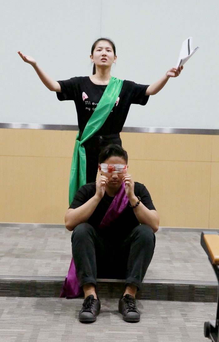 同学们正在表演《俄狄浦斯/安提戈涅》