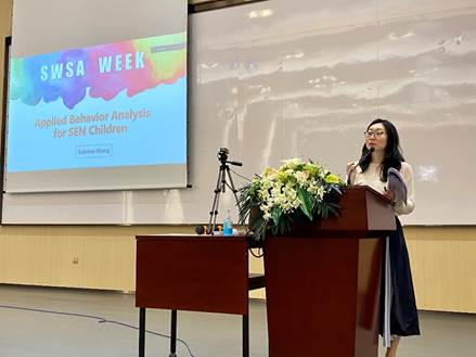开幕式结束后,紧接着第一场校友分享会。现任UIC SWSA专业导师王姝萍老师,用生动有趣的例子,通俗易懂的语言,与大家做了“行为分析理论在SEN孩童上的应用”的分享。而其余三场校友分享会,将于本周内进行。