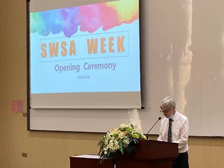 我校协理副校长、人文与社会科学学部院长贝力行教授(Prof. Adrian Bailey)表示SWSA专业不仅教导学生理论知识,更为学生提供一个正向与友善的大家庭培育环境。