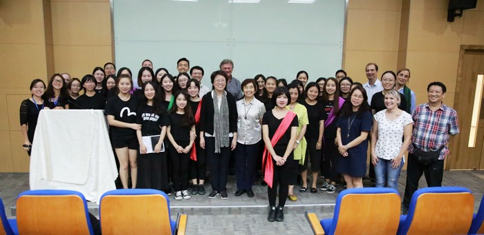 学生演员与Britton教授、协理副校长关利平教授等合影