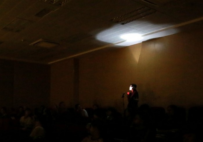 演员在独白时用手电筒营造气氛