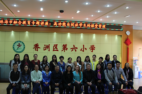 4月1日,UIC社会管理研究与服务中心邀请来自美国的两位特殊教育前线教育者Linda Martin和Janice Chan,在珠海市香洲区第六小学为珠海市中小学的教师举办了一场名为“珠海市融合教育专题讲座:高功能自闭症学生的课堂管理”的讲座。当天共有200多 名珠海中小学教师参加,现场座无虚席。
