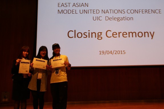 在4月19日结束的在澳门大学举行的东亚模拟联合国大会上,我校大一外国语言文学的姚雨彤和大二财务学的邓雯文表现出色,分别获得“最佳立场文件奖”和“最佳代表奖”。