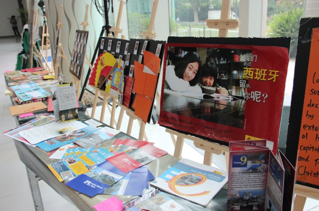 A区还展览了有关西班牙的文化风俗,特别是具有西班牙地域风情的服装,引得众多同学驻足观看和学习。此次西班牙文化周活动的主办方UIC西语社还在4月25日上午为同学们带来“food and drinks Talk”,在西班牙美食和美酒的艳遇中,让同学们想起西班牙激情的斗牛和西甲联赛的独特魅力。