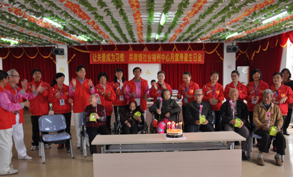 2月26日,养老机构社工巡回服务来到井岸敬老院,社工为老人举办生日会