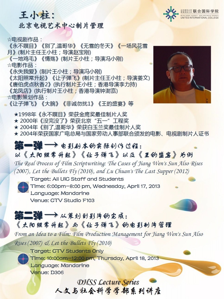 Speaker: Mr. Wang Xiaozhu, Production Manager of Beijing TV & Art Center